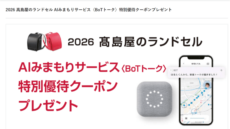 - 高島屋のランドセル購入でBoTトーク1,000円引きクーポン