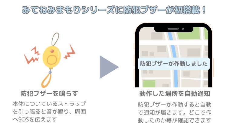 ※防犯ブザーが作動した際は、保護者のスマホに自動で通知が届く仕組みです。
